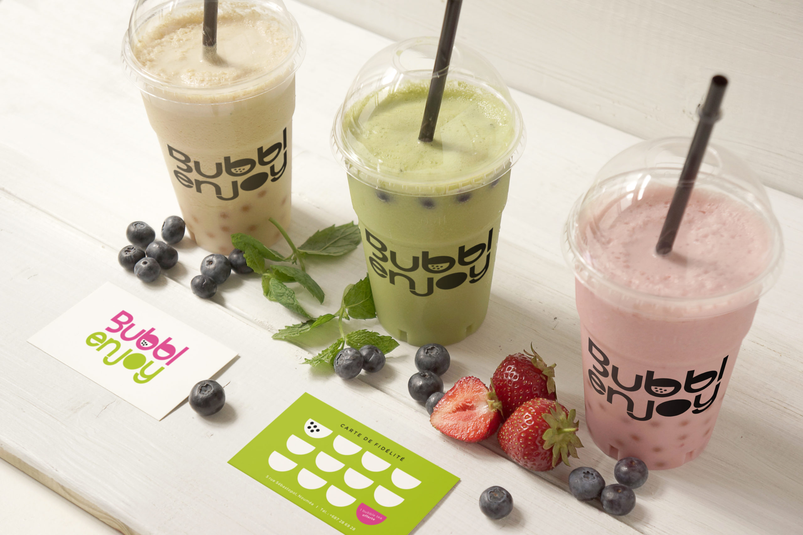 Bubblenjoy est spécialisé dans la création de boissons sur-mesure. Grâce à des milliers de combinaisons possibles, il y en a pour tous les goûts (bubble fruit, bubble tea, granitas, boissons gazeuses, smoothies, frappés...).